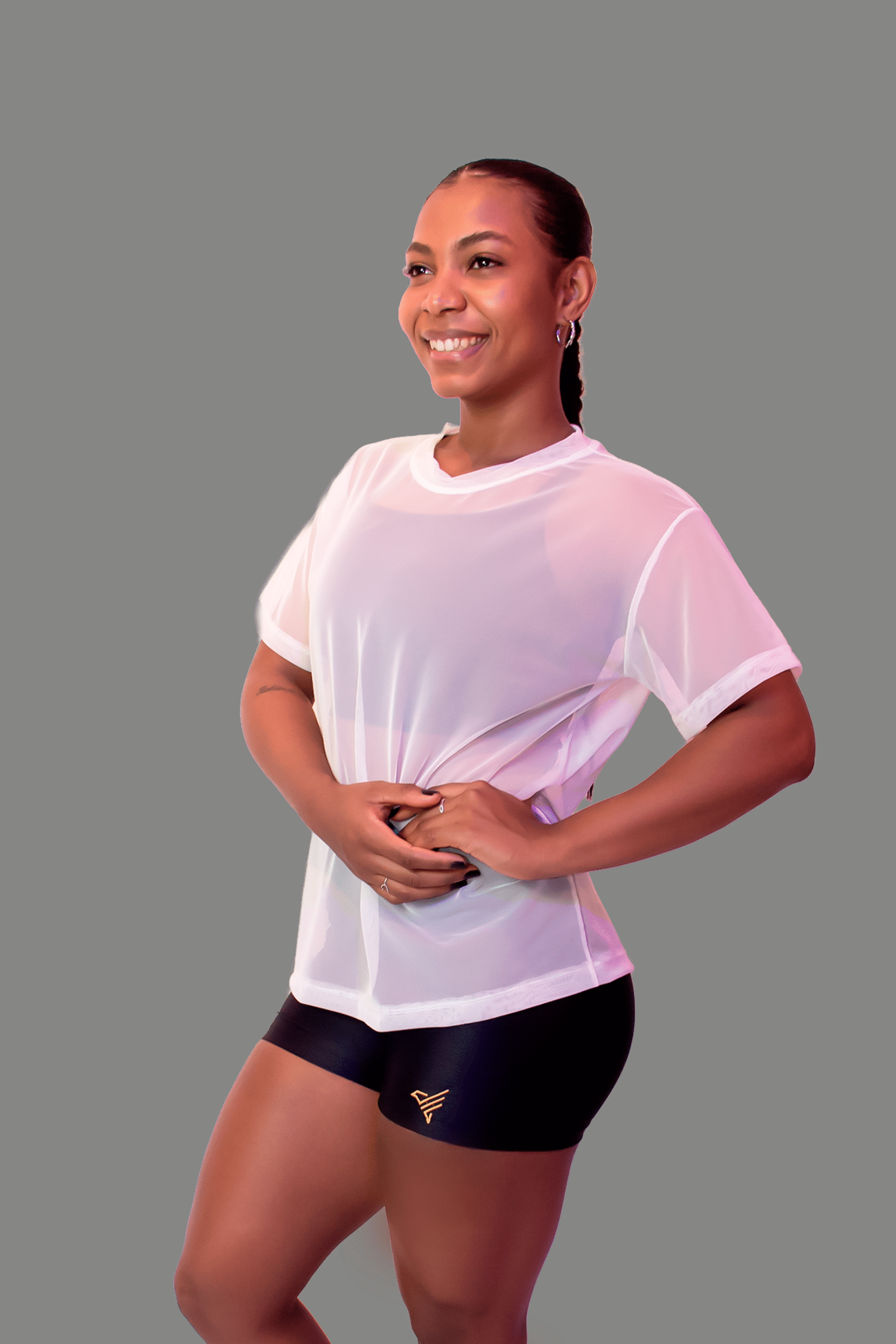 A Camiseta Tule foi criada em um tecido especial que se destaca pela leveza extrema e toque suave. Ideal para quem busca conforto absoluto, frescor e estilo minimalista. Com caimento fluido, é a escolha perfeita para treinos leves, alongamentos e também para composições casuais.